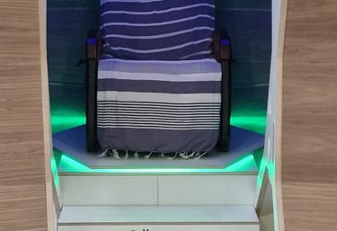 Each session is personalised through a short conversation, followed by a 50-minute immersion inside the chamber and time to integrate, so you leave feeling grounded, clear, and restored. We allow up to 90 minutes for each session.